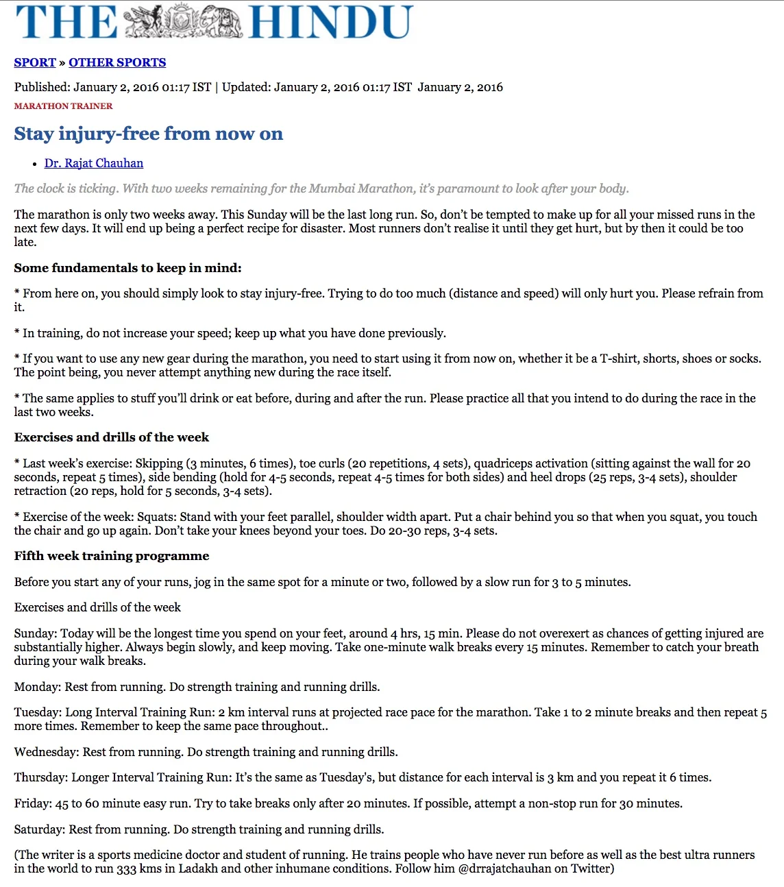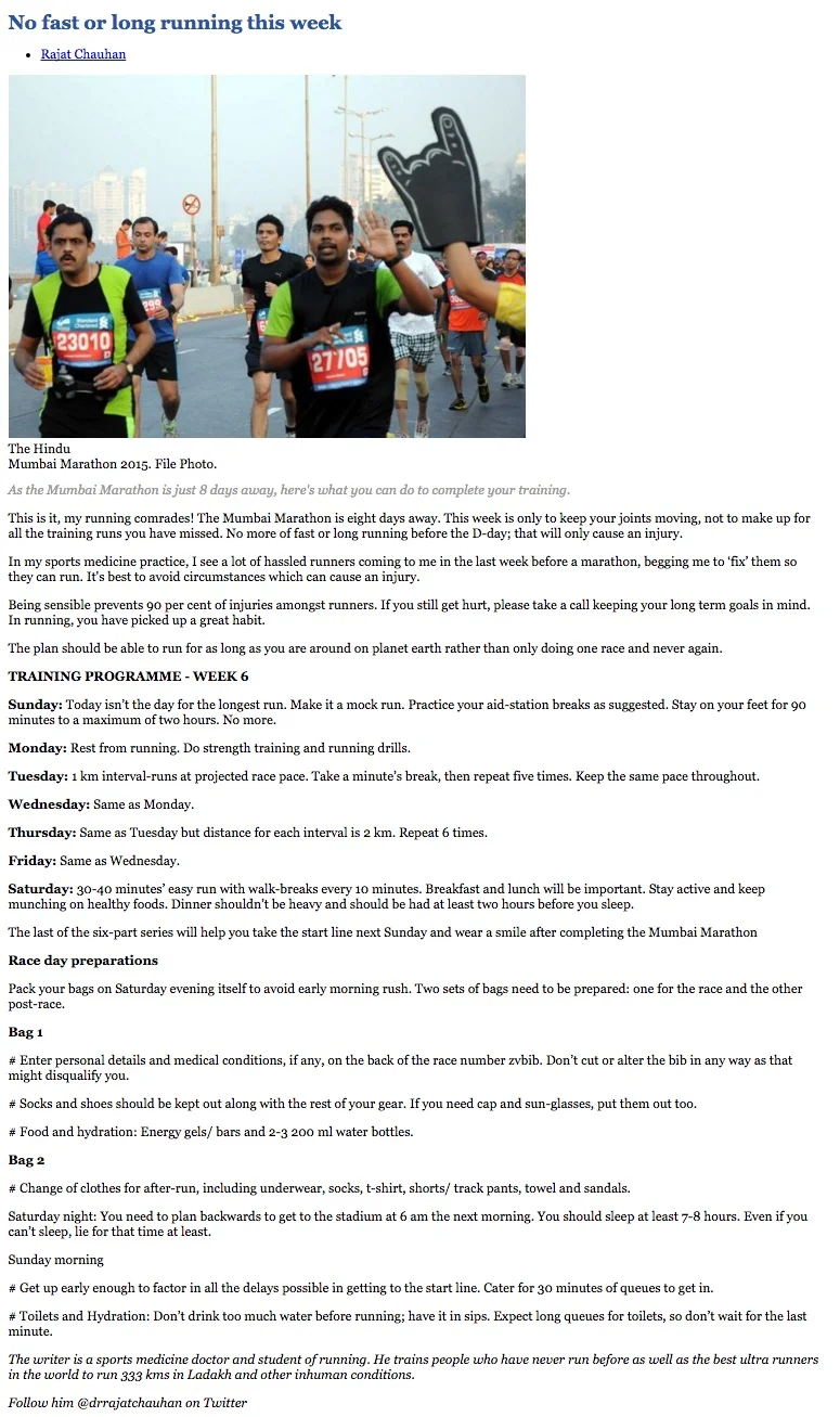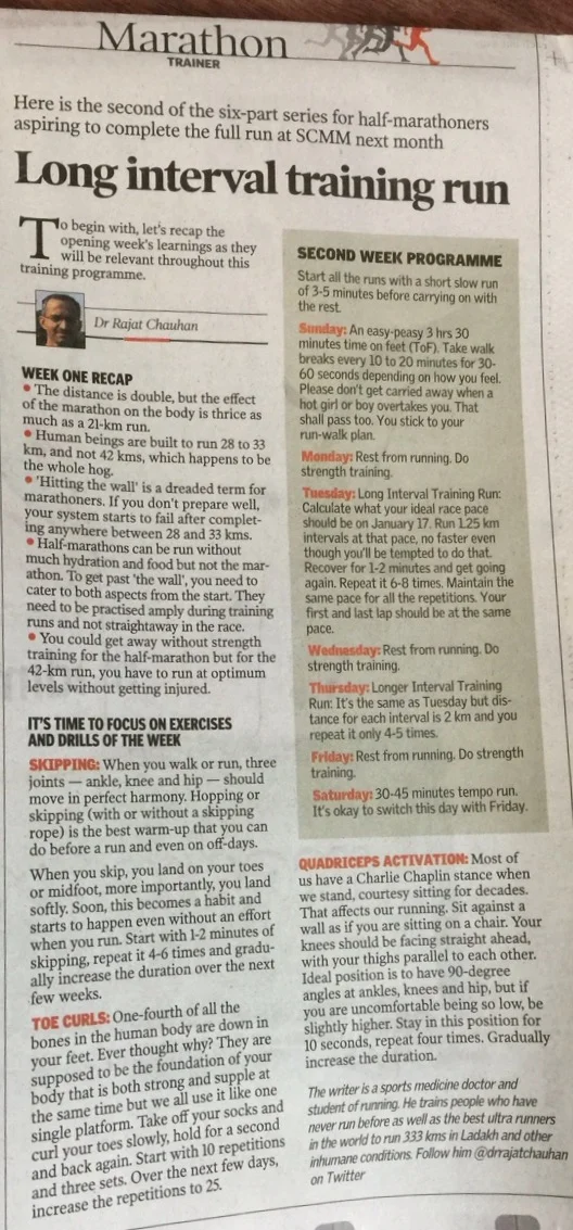 This is a 6 week Half to Full Marathon training program. Ideally I suggest 10-12 weeks of training for the same.