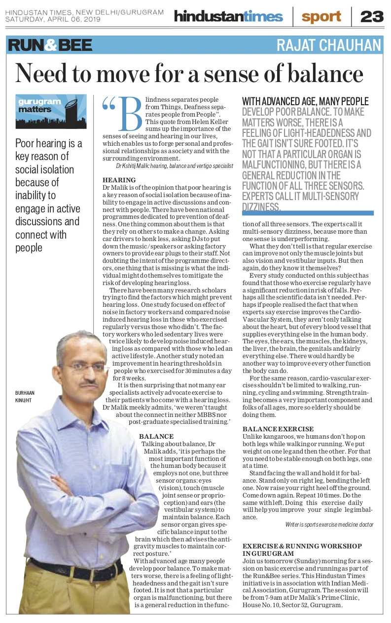Extended version of Run&Bee column in Hindustan Times: Week 44 / 6.4.2019: Need to Move For a Sense of Balance