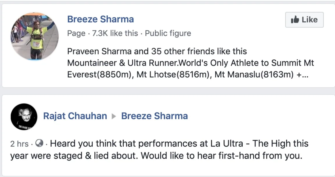 It is unfortunate that an experienced Indian ultra-runner, Mr BS, took a swipe at this year’s La Ultra - The High and it’s participants suggesting it was staged and lied about.